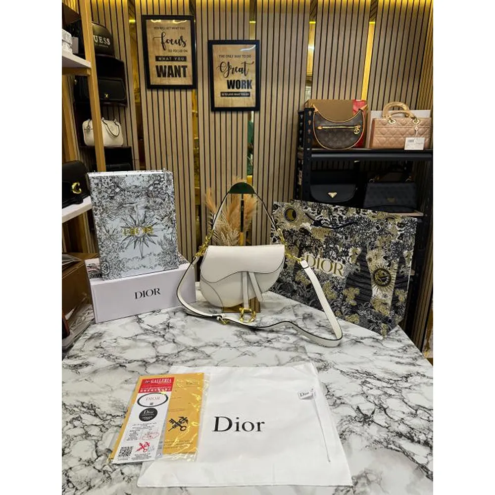 Christian Dior Saddle Crossbody Bag With Double Box & Dust Bag White
