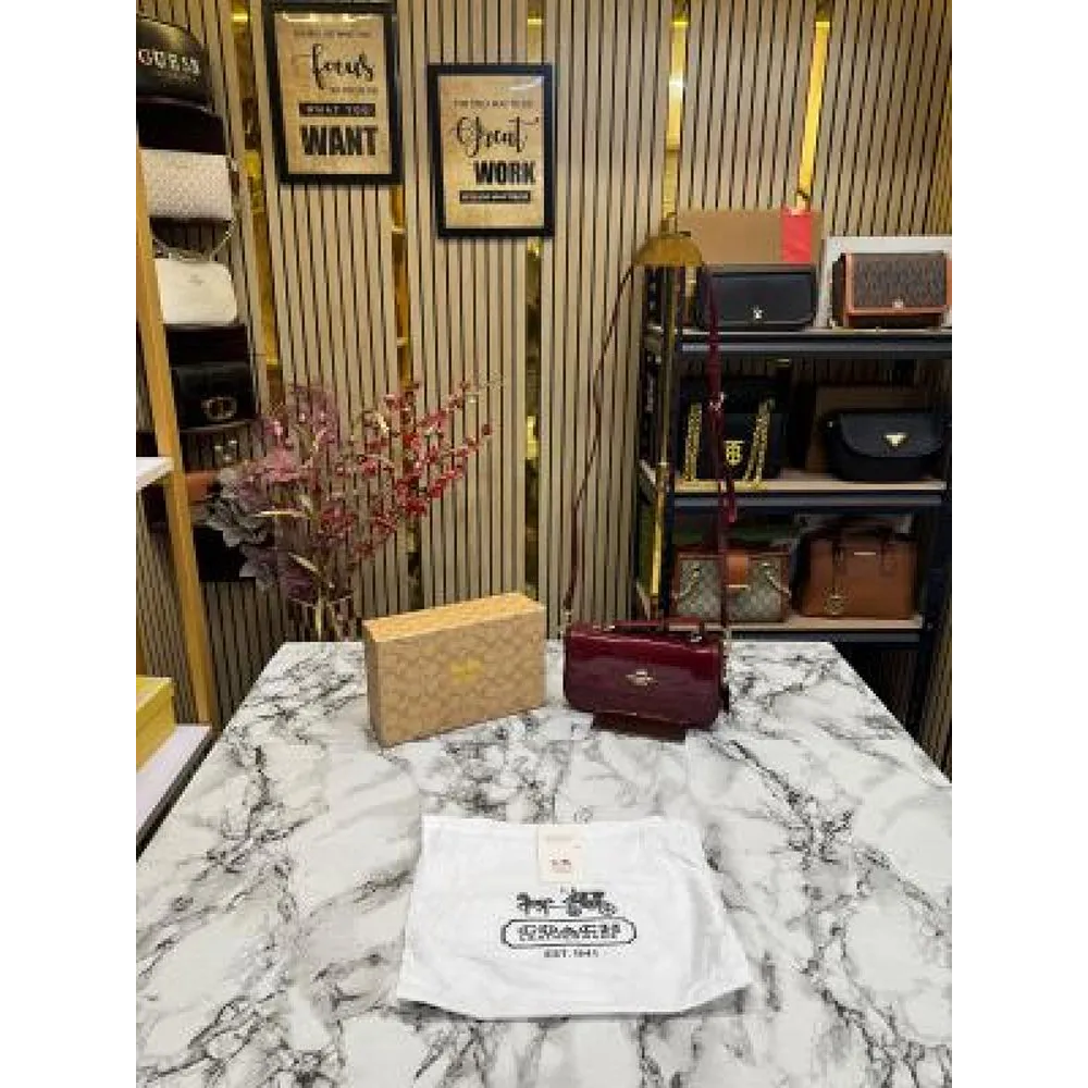Coach Signature Crossbody Bag With Box And Dust Bag Maroon