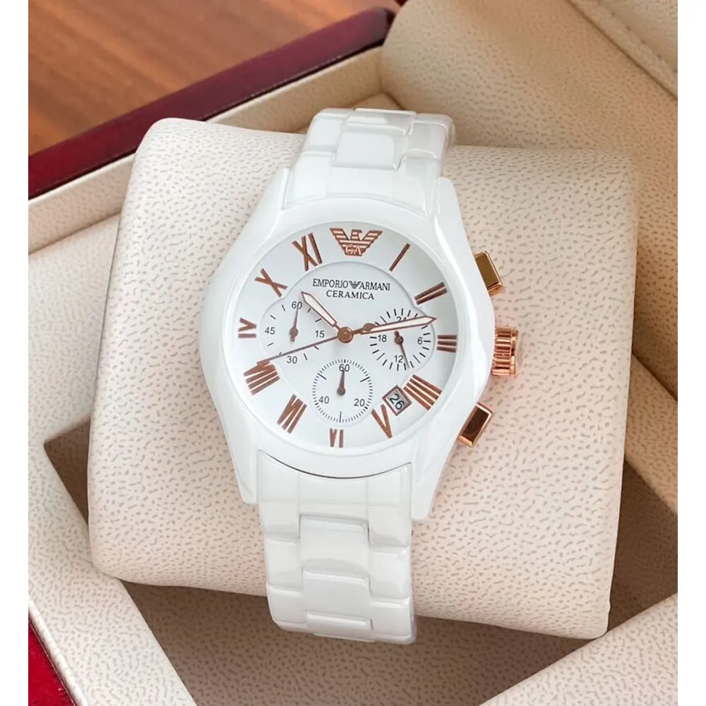 What truly makes the Emporio Armani AR1416 Ceramica White Watch exceptional is its versatility. It effortlessly shifts between a luxurious fashion statement and a practical, everyday companion. The all-white ceramic design brings a refreshing, eye-catching appeal, making it perfect for men who love clean, modern, and standout accessories.