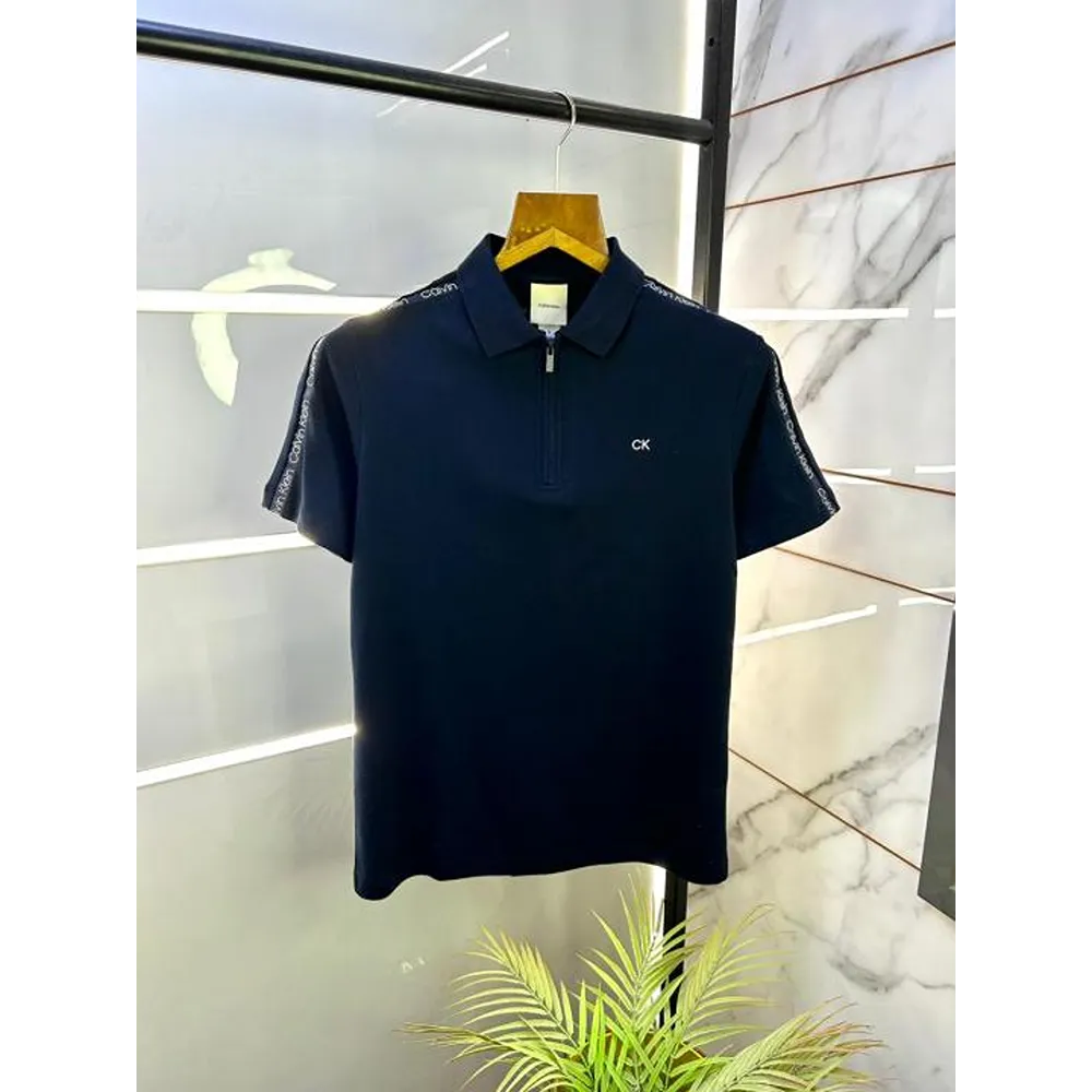 Luxury First Copy Calvin Klein Polo T-Shirt for Men Navy Zipper Neck Design