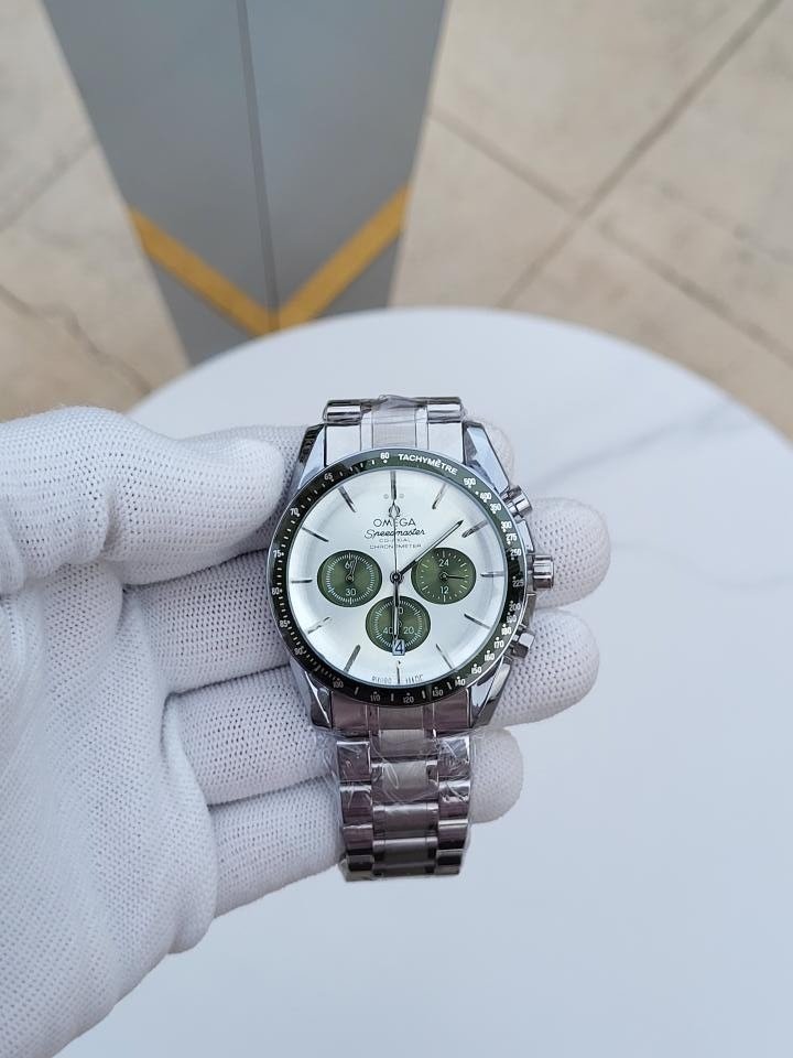 First Copy Omega Speedmaster Watch Chronograph Silver Green