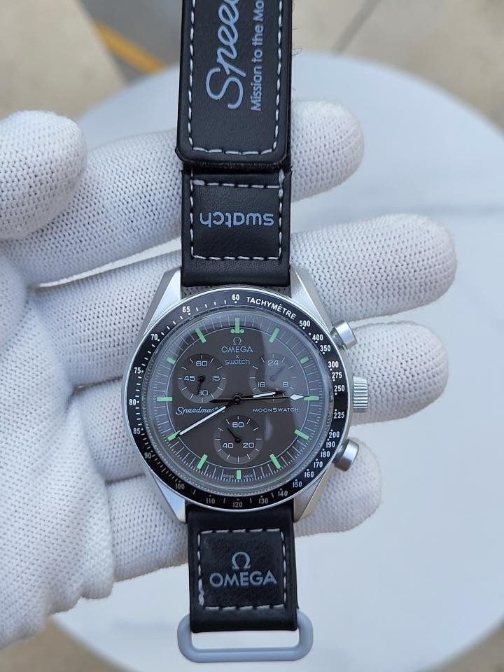 First Copy Omega Swatch Chronograph Watch Black Silver