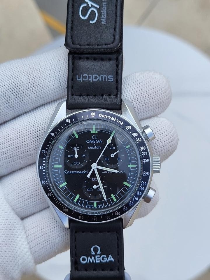First Copy Omega Swatch Chronograph Watch Black Silver