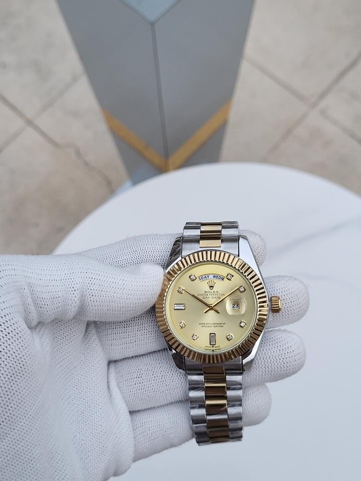 First Copy Rolex Day Date Watch Two Tone Diamond Gold Dial