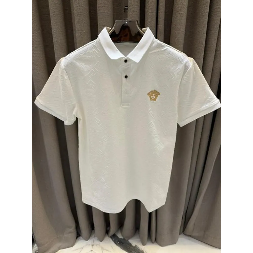 Stylish First Copy Versace White Polo T-Shirt for Men with Chest Logo