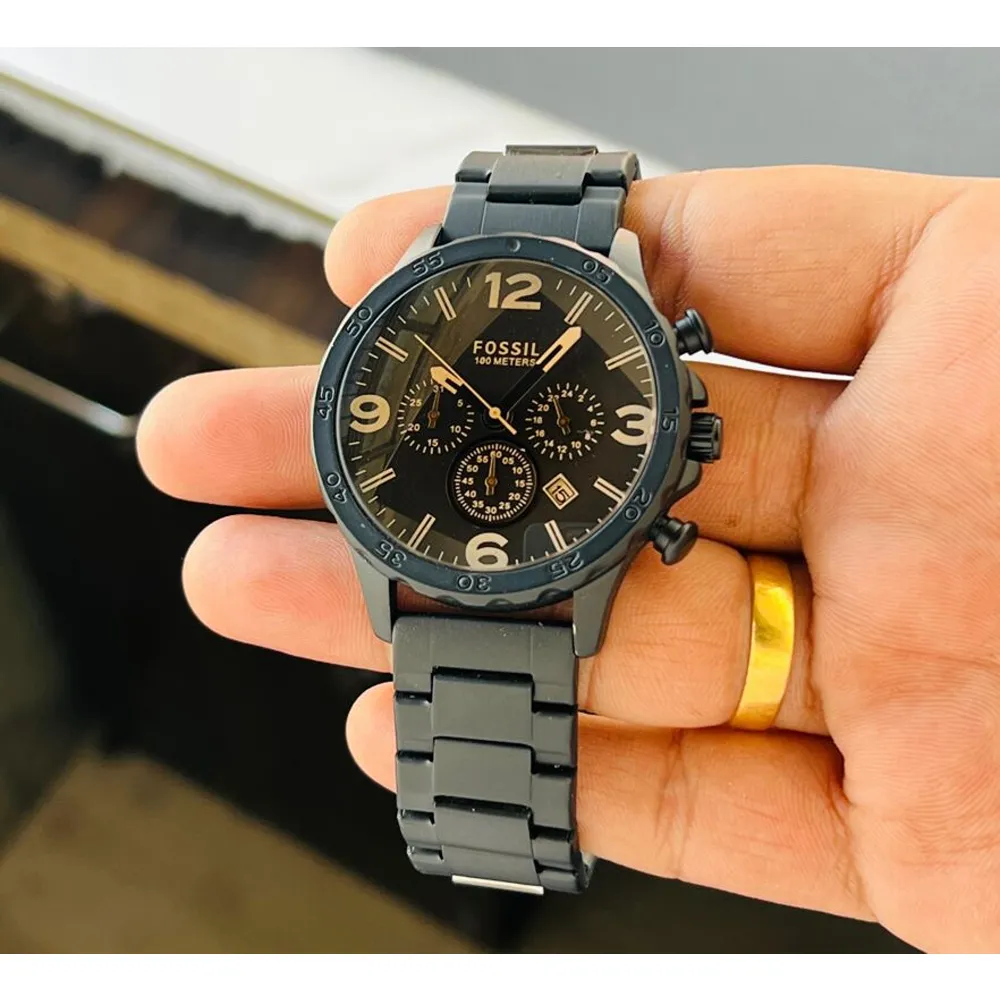 The Fossil Nate Chronograph Black Watch is built for men who prefer a rugged, bold, and confident style. With its oversized 49mm dial, this timepiece immediately stands out, making it a perfect accessory for those who enjoy strong visual presence and reliable performance. The watch features big, highly visible number figures that make time reading effortless, whether you’re indoors, outdoors, or on the move.