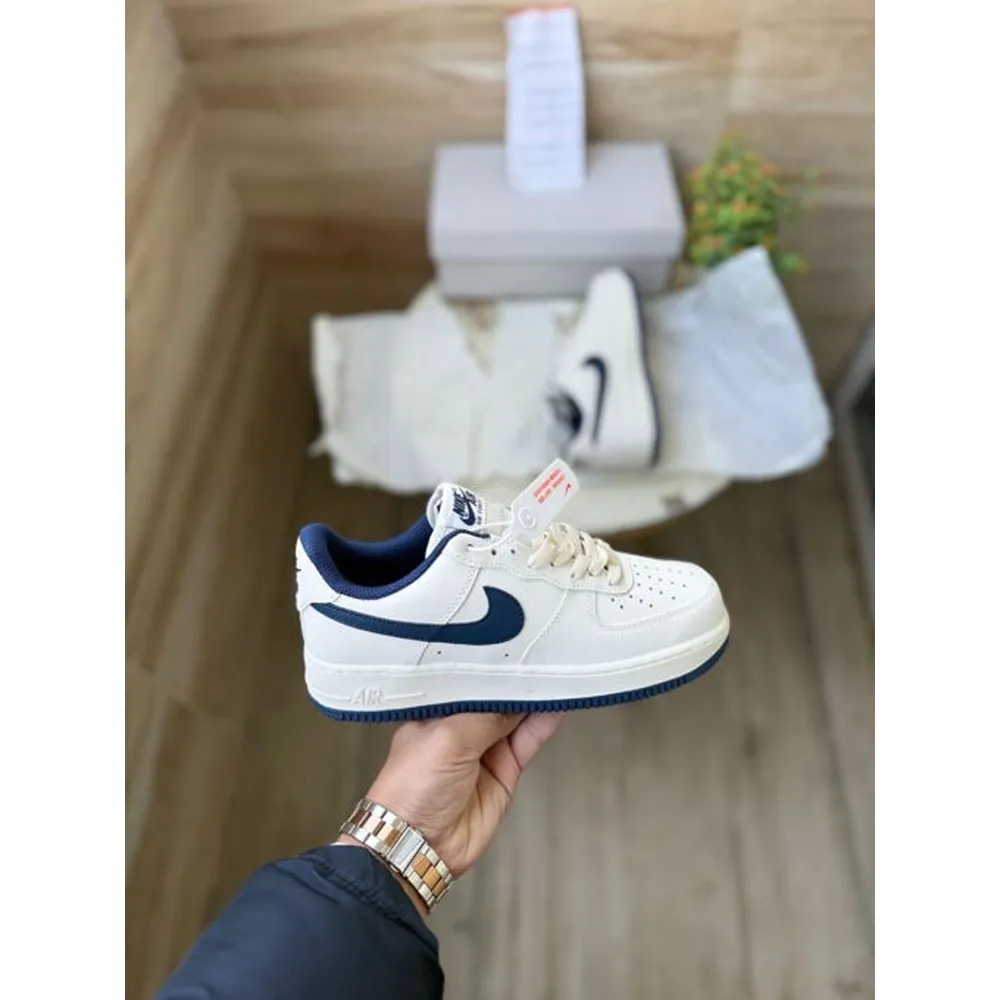 Built using premium 7A first copy quality materials, this sneaker closely mirrors the original Air Force 1 in both appearance and structure. The smooth synthetic leather upper is durable, easy to maintain, and gives a clean premium finish. The bold navy swoosh adds depth and character, while the classic low-top design keeps it versatile for everyday wear.