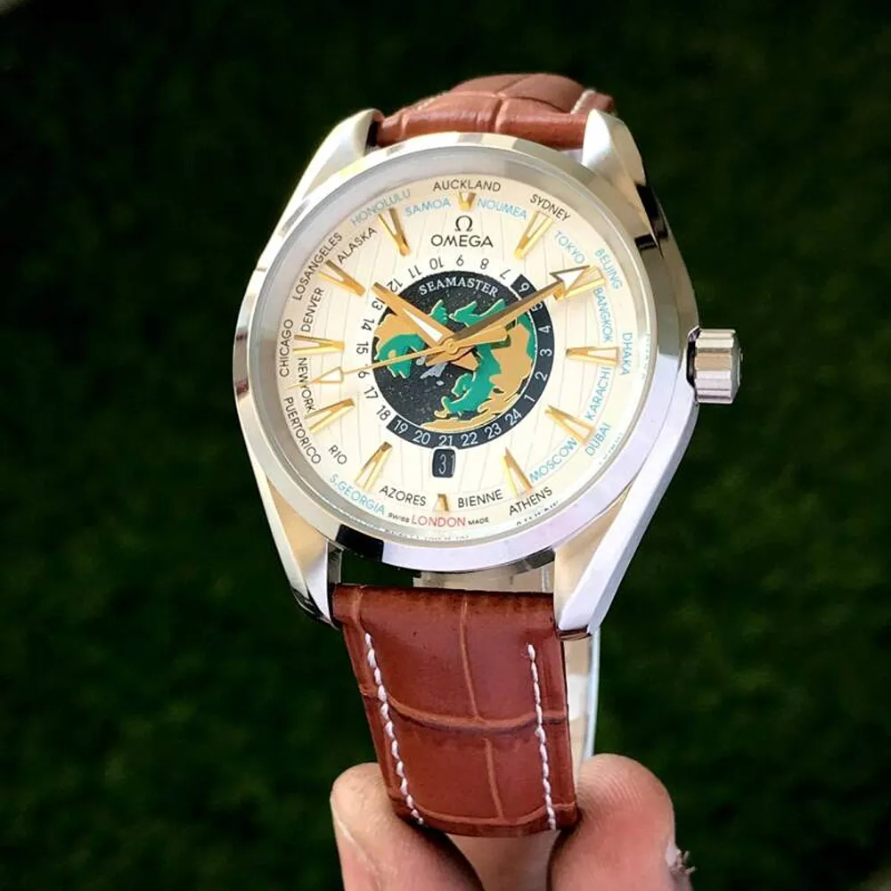 The Omega Aquaterra WorldMap Seamaster is crafted for men who desire a perfect blend of sophistication, durability, and technical brilliance. With its iconic world map dial, 41mm polished case, and high-end leather strap, this watch is not just a timepiece—it’s a refined expression of personality, style, and global mindset. Designed with premium materials and powered by a Japanese automatic mechanism, it ensures enduring performance and elegant presence on the wrist.