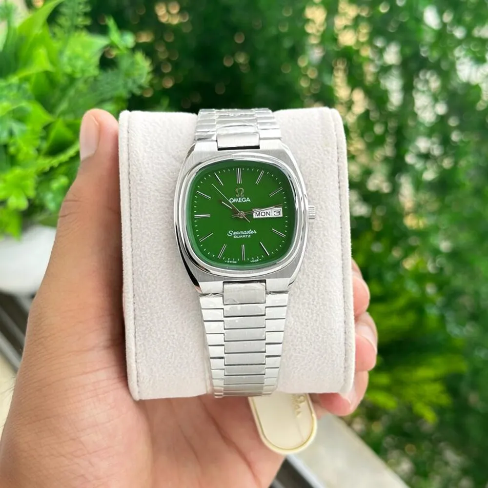 The Omega Seamaster Vintage Green Dial Watch is crafted for men who demand elegance, reliability, and timeless class in a single timepiece. With its distinctive 40mm case size, this watch strikes the perfect balance between bold presence and everyday wearability. The beautifully designed green dial, paired with a day and date indicator, sets it apart from ordinary watches, providing both style and convenience.