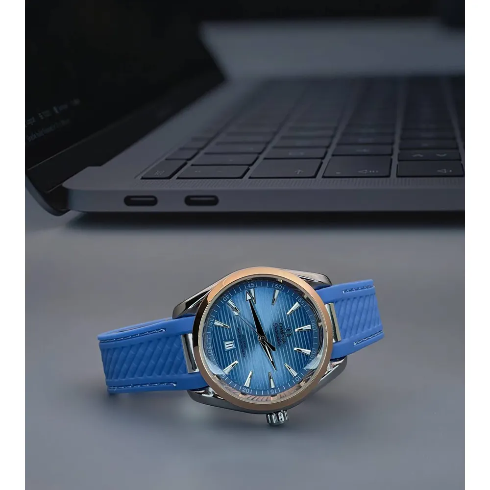 Adding to its appeal, the watch arrives in a free Omega printed box, making it an excellent gifting option or a valuable addition to any watch collection. Combining style, functionality, and comfort, the Aqua Terra Blue is a versatile choice for every modern wrist.