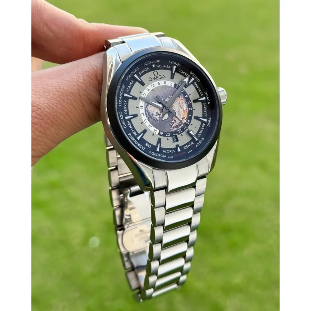 The OMEGA SEAMASTER World Map Black Dial is a sophisticated timepiece crafted for men who value unique design paired with reliable performance. Featuring a bold and beautifully detailed world map dial, this watch stands out instantly, making it an eye-catching accessory for any wrist. Instead of standard hour markers, the dial showcases country markers, giving the watch a globally inspired look that appeals to travelers, explorers, and anyone with an appreciation for world culture and premium craftsmanship.