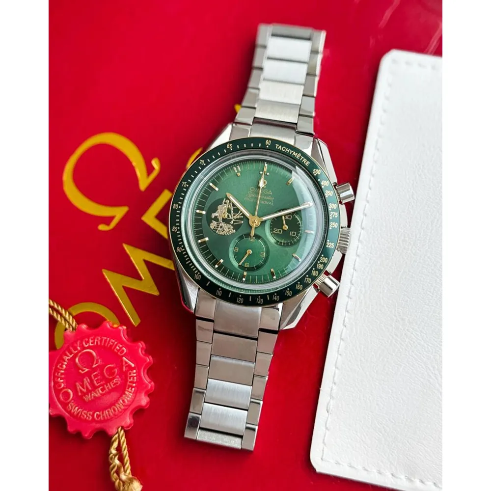 Luxuriou Stylish Omega Speedmaster Watch Apollo Green Dial