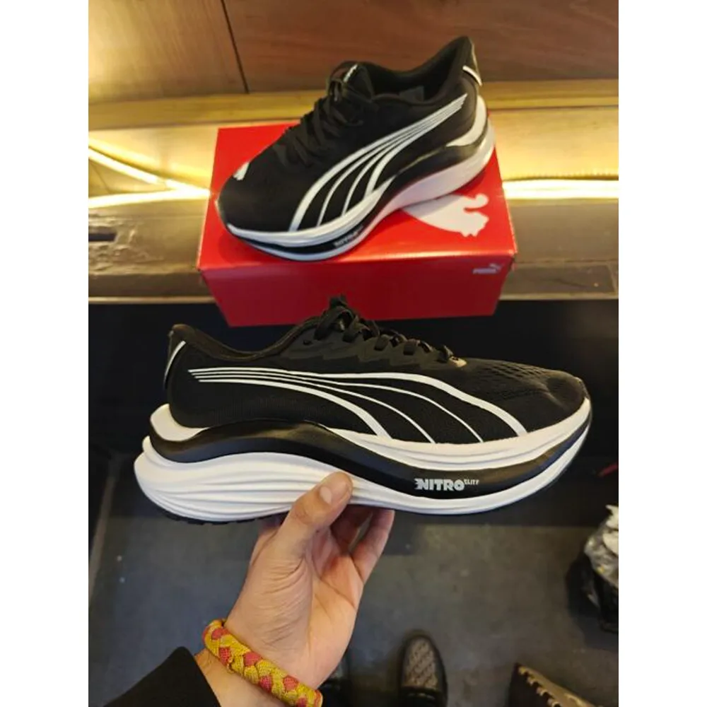 Upgrade your footwear game with the First Copy Puma MagMax Nitro Elite (Black) — a powerful blend of premium style, advanced comfort, and high-performance design. Crafted using Premium 7A materials, this all-black sneaker offers a near-original look and feel that appeals equally to fitness enthusiasts and sneaker lovers. Its sleek, minimalist silhouette makes it perfect for gym sessions, running, casual outings, and even travel. The advanced responsive cushioning delivers superior energy return and shock absorption, helping you stay comfortable through intense workouts and long days on your feet. The lightweight and breathable construction allows proper airflow to keep your feet cool and sweat-free, while the high-traction durable outsole ensures excellent grip on gym floors, tracks, and daily walking surfaces. Designed with a true-to-size fit, this sneaker offers stability, support, and long-lasting comfort in every step. When you shop at Sneaker Shokeen, you get premium first copy sneakers at affordable prices, backed by safe and fast PAN India delivery, friendly customer support, and complete trust. Priced at just ₹3,199, the First Copy Puma MagMax Nitro Elite (Black) is the perfect all-rounder for gym, running, workouts, casual styling, and weekend trips — delivering premium performance without the premium price tag.