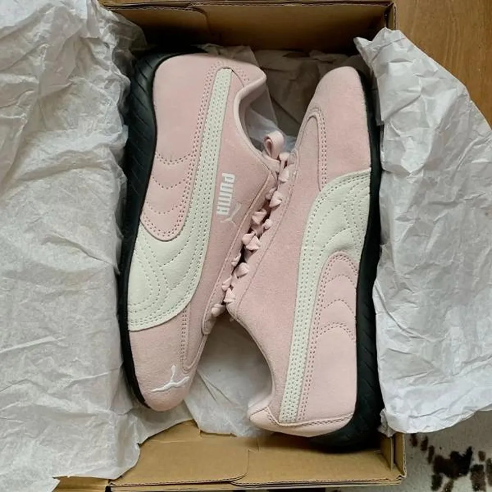 The Puma Speedcat Shoes Pink Pearl for Women offer a stylish blend of motorsport heritage, modern street fashion, and everyday comfort. Inspired by classic racing footwear, the Speedcat series is known for its sleek, low-profile silhouette and smooth curves that deliver a bold yet elegant look. The Pink Pearl colorway adds a soft, feminine, and premium touch, making these shoes perfect for women who love a fashionable statement with a sporty vibe.