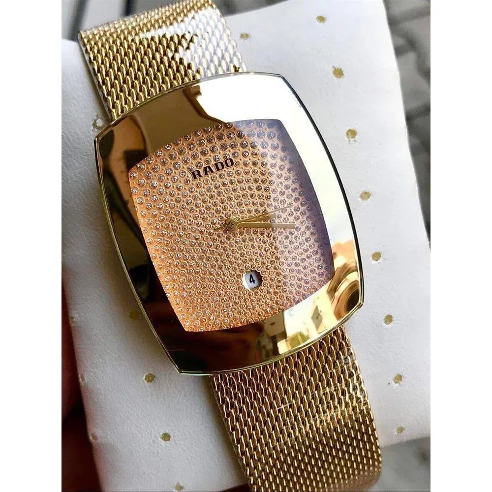 Premium Luxurious Rado Gold Dotted Watch Dial Square Case