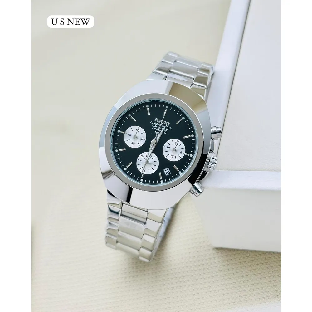 The Rado Chronograph Black Ceramic Look is a premium men’s timepiece designed for those who prefer a bold, powerful, and modern watch that stands out effortlessly. Built with a high-gloss ceramic-style aesthetic and a fully functional chronograph, this watch packs both style and performance into a single statement piece. Whether it’s for office wear, casual styling, or evening outings, this timepiece brings a sharp and classic presence to your wrist.