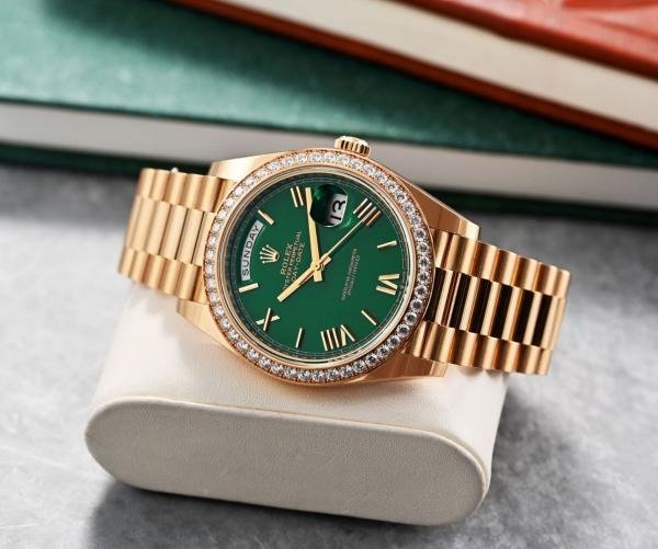 First Copy Rolex Oyster Perpectual Watch Diamond Gold Green (SW7879)