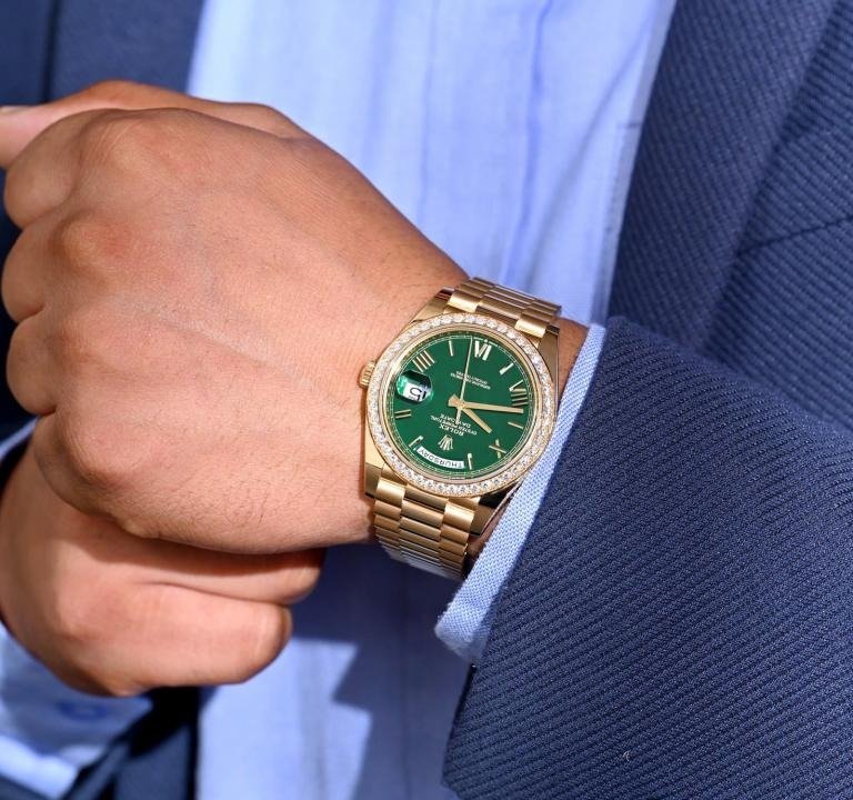 First Copy Rolex Oyster Perpectual Watch Diamond Gold Green