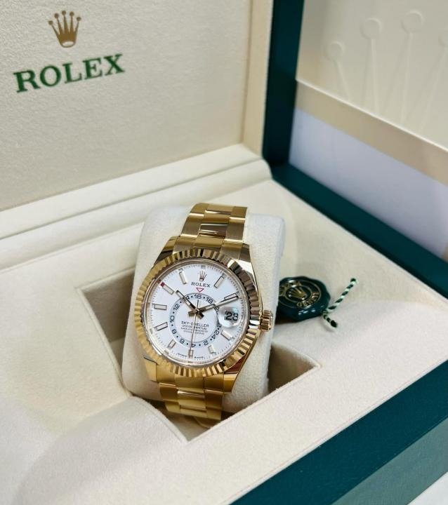 First Copy Rolex Sky Deweller Watch Oyster Perpetual Gold White
