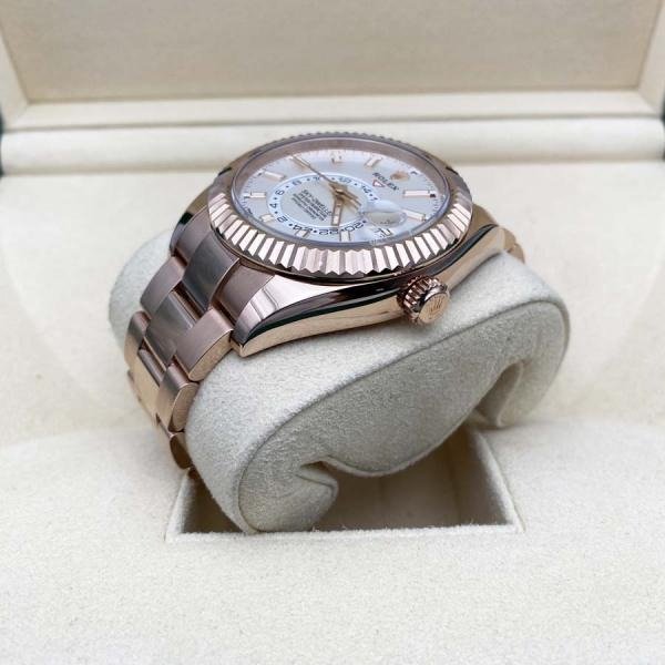 First Copy Rolex Sky Deweller Watch Oyster Perpetual Rose Gold White