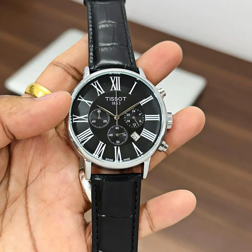 The Tissot 1853 Roman Black Watch is a refined blend of luxury, precision, and durability—crafted for the modern gentleman who values both elegance and performance. With its 43mm slim black dial, this timepiece stands out effortlessly, offering a minimalist yet bold presence on the wrist. Whether you are attending a formal event or dressing casually, its versatile design ensures it complements every outfit with ease and sophistication.