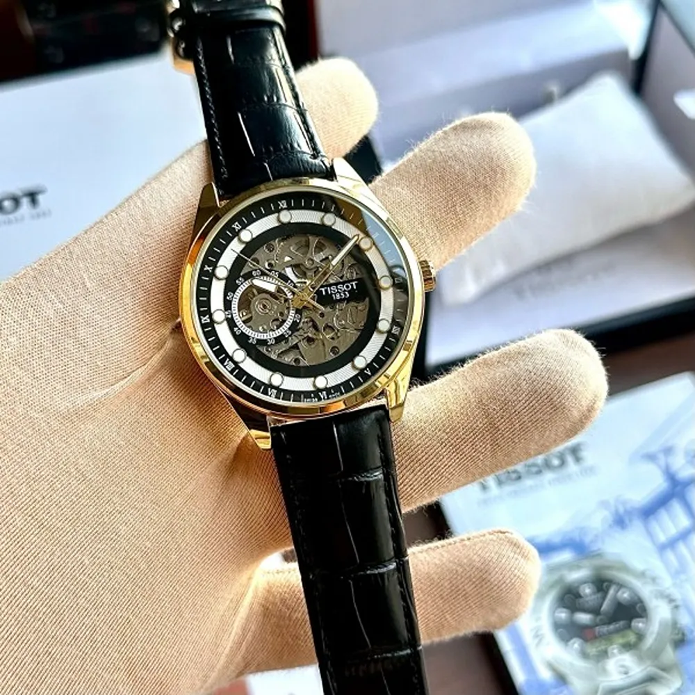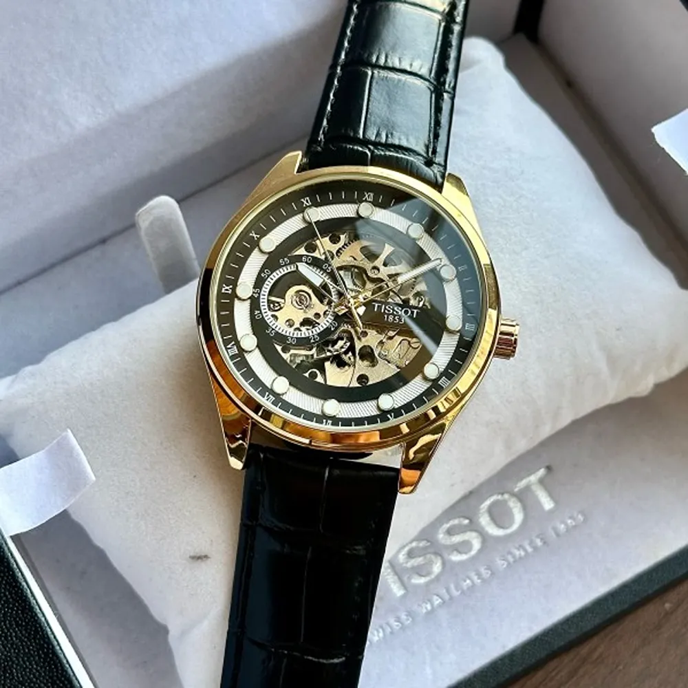 Tissot Automatic Leather Black Gold Watch For Men