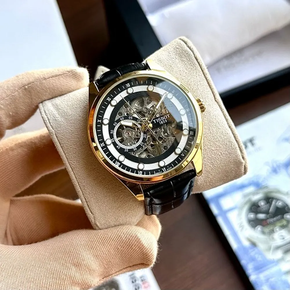 Tissot Automatic Leather Black Gold Watch For Men
