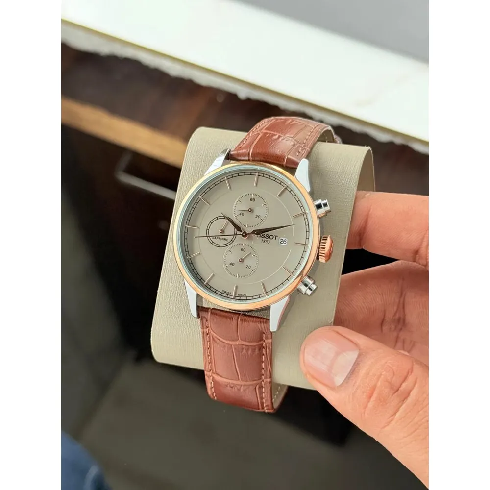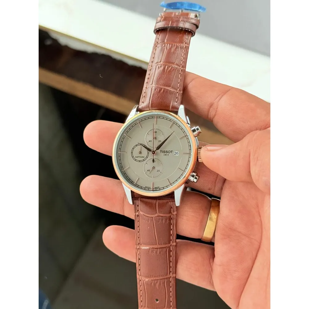 Premium Timepiece For Men Tissot Casual Watch Grey Dial Leather Strap
