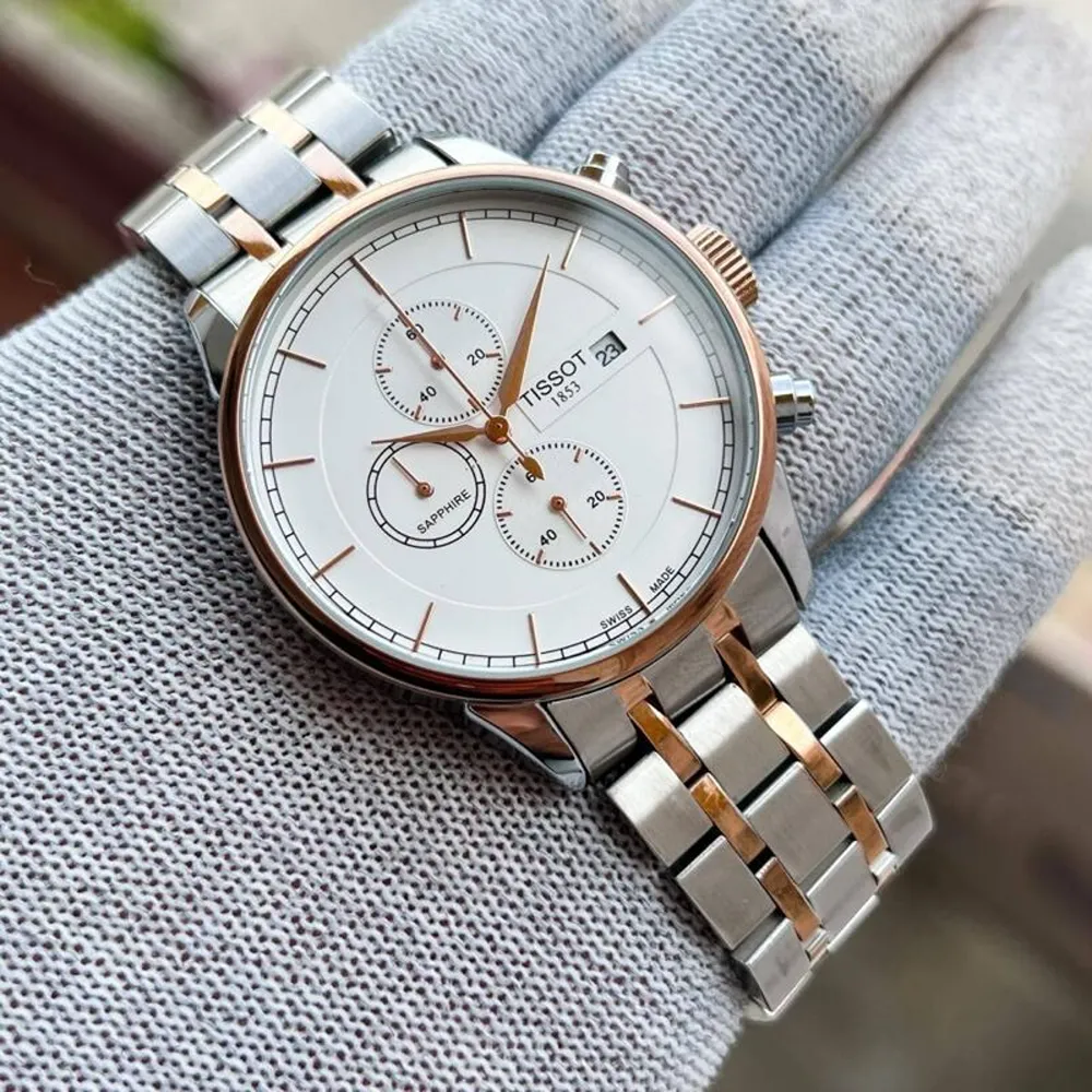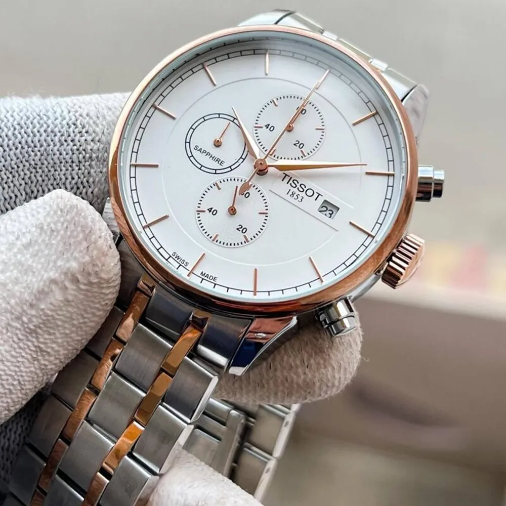 This timepiece is more than just an accessory—it’s a reflection of refined taste. The copper bezel and white dial create a stunning visual harmony, while the chronograph and date functions make it a practical companion for any lifestyle. Its quality construction ensures durability, and the stylish stainless steel chain offers the perfect finishing touch. Whether he is dressing casually or formally, this watch enhances his presence with confidence and class.