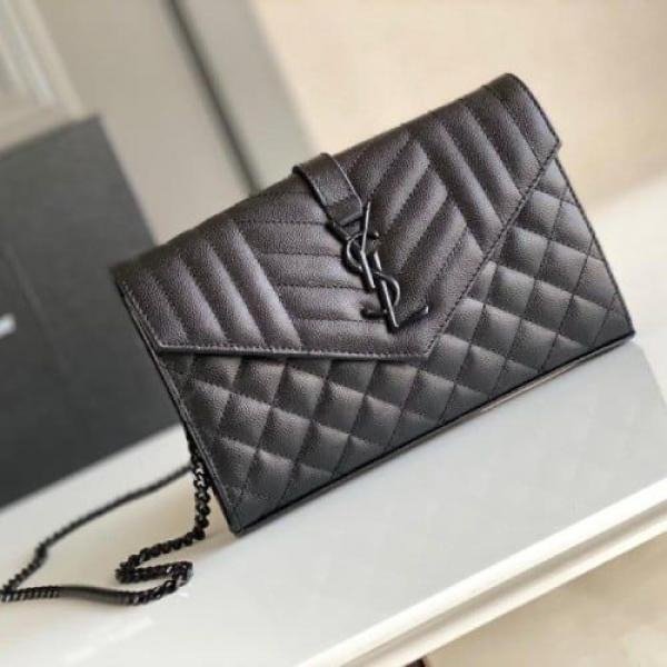 YSL Clutch Cum Chain Sling Bag With Box Full Black